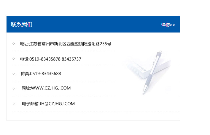 傳真:0519-83435688    郵編:213135    網址:WWW.czjhgj_com.qztota.com    電子郵箱:JH@czjhgj_com.qztota.com